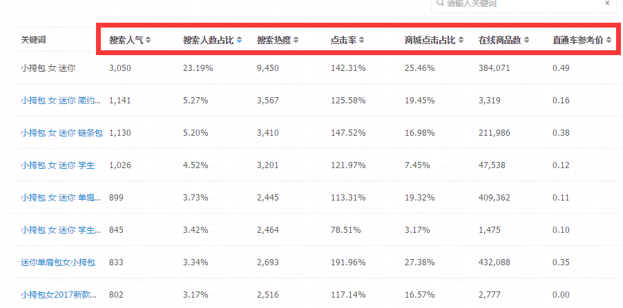 直通车参考价(市场-搜索词分析-搜索词查询)